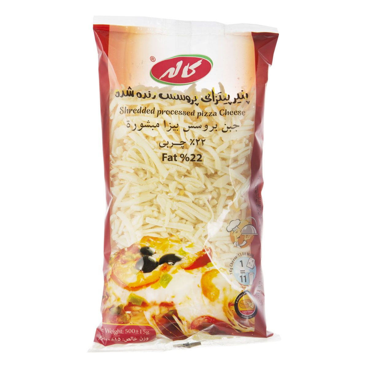 پنیر پیتزا رنده شده 500گرم کاله/22درصدچربی
