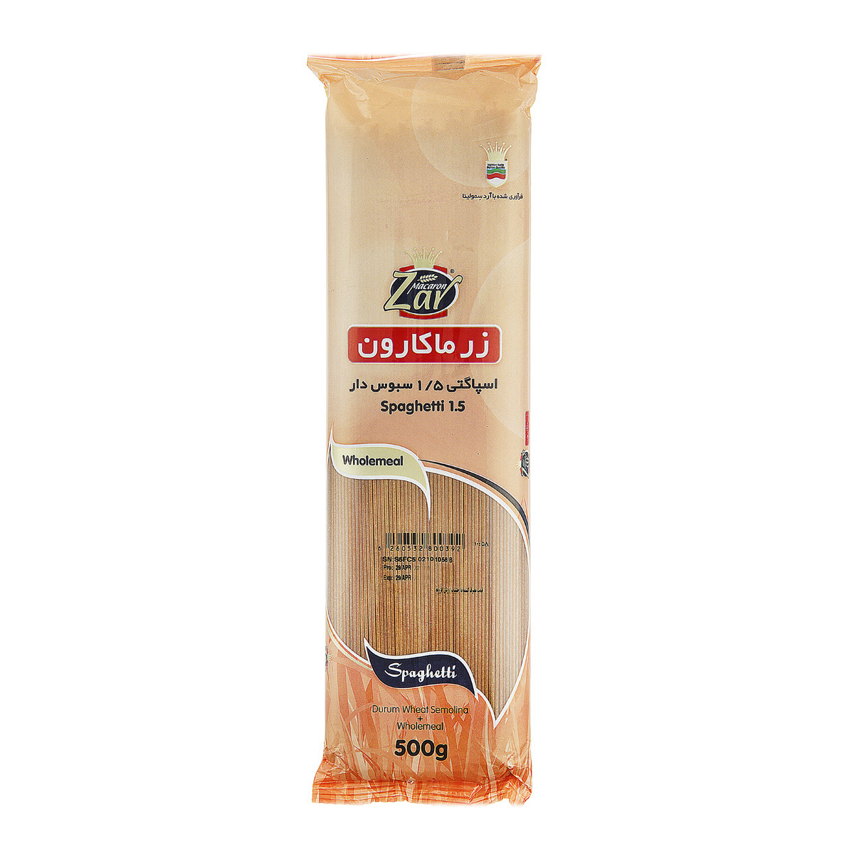 زر ماکارون 1.5رشته ای سبوس دار 500گرم