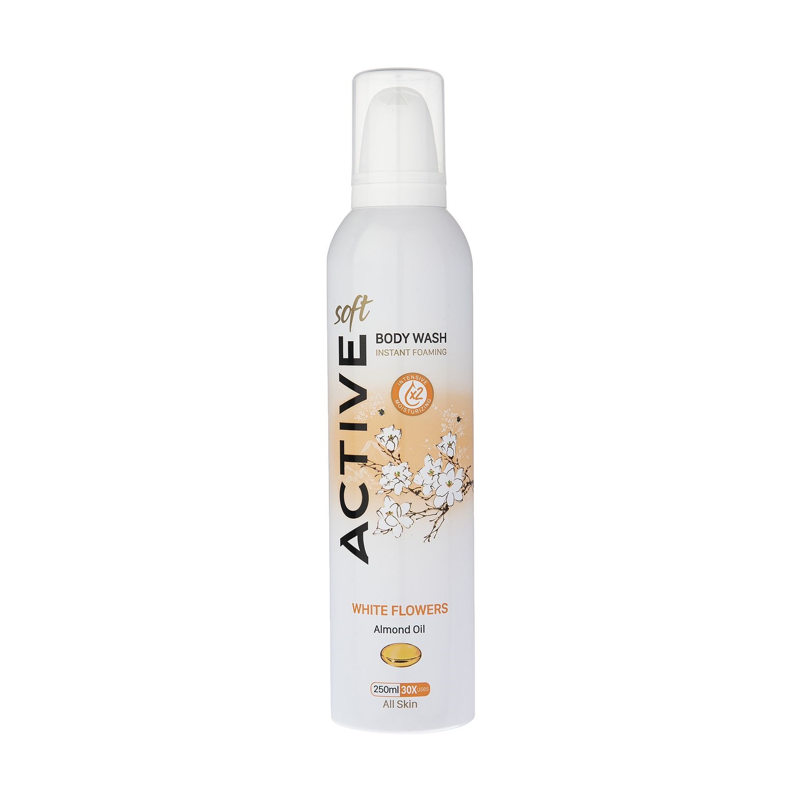 اکتیو فوم بدن اسپری روغن بادام و گل های سفید 250 میل