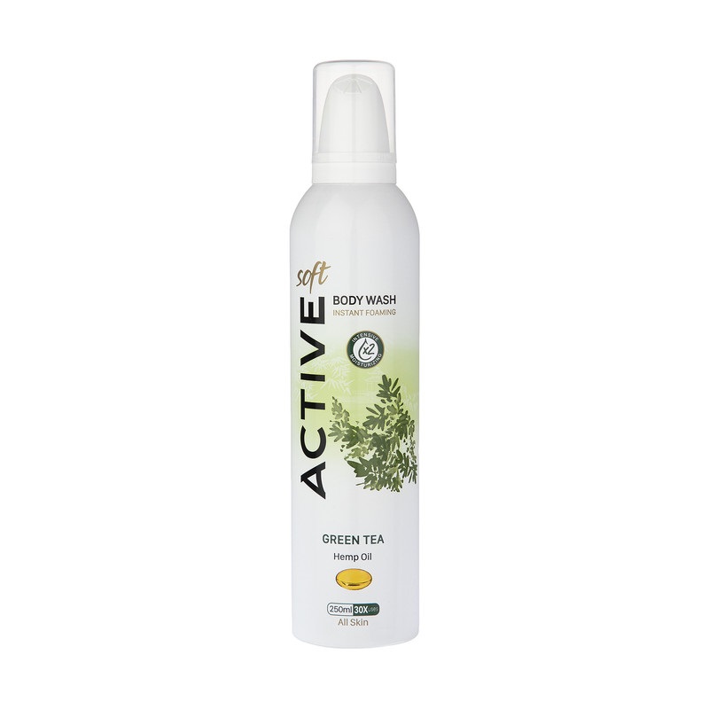 اکتیو فوم بدن اسپری روغن شاهدانه و رایحه چای سبز 250 میل